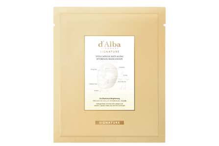 ビタミンCカプセルと発酵コラーゲン水が、透明感とハリのある肌印象をあと押し。ビタカプセルエイジングケアハイドロゲルマスク 4枚入り ¥3,200/ダルバ