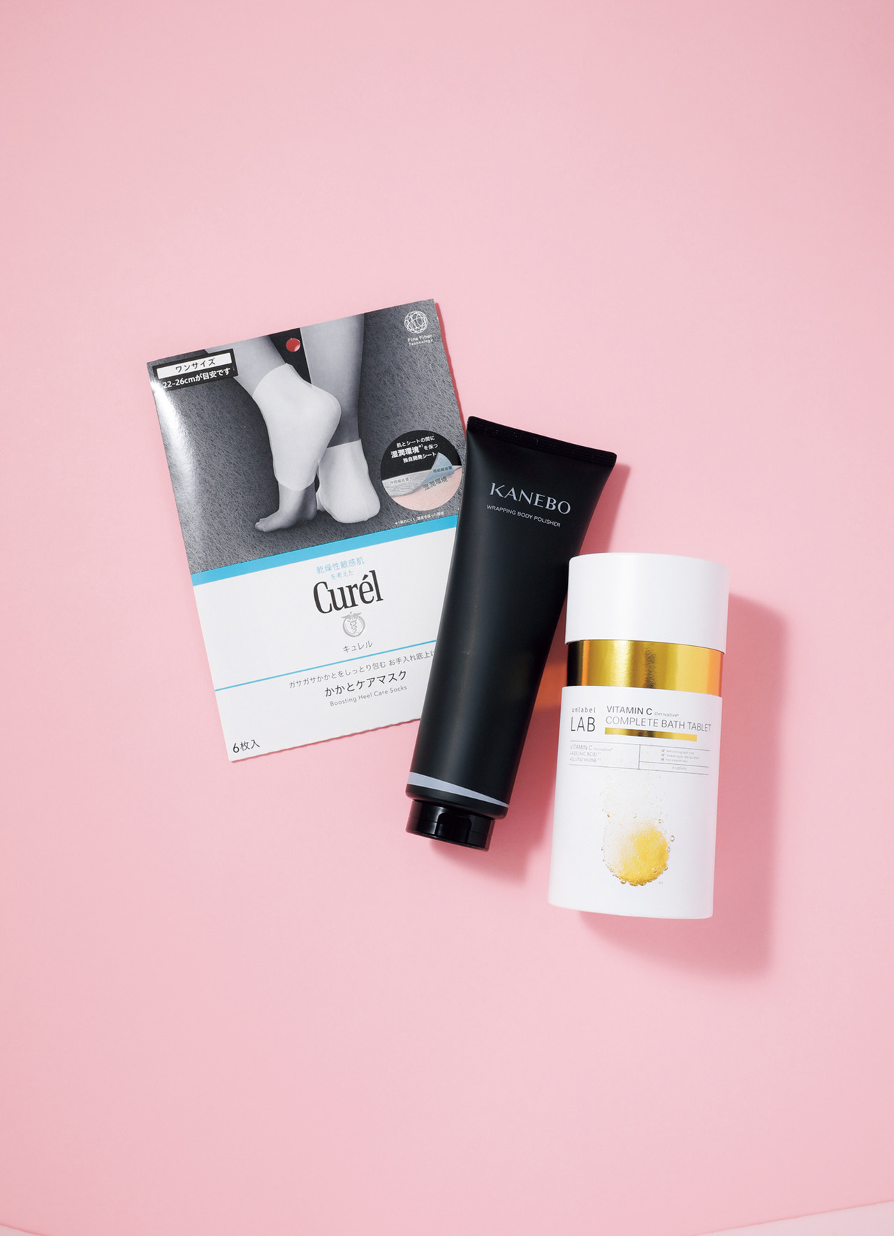 左・「使い捨てで衛生的。ガーゼのような薄い生地で圧迫感もなくこの冬も絶対リピートしたいアイテム」キュレル ガサガサかかとをしっとり包む お手入れ底上げ かかとケアマスク¥550(編集部調べ)╱キュレル(花王)