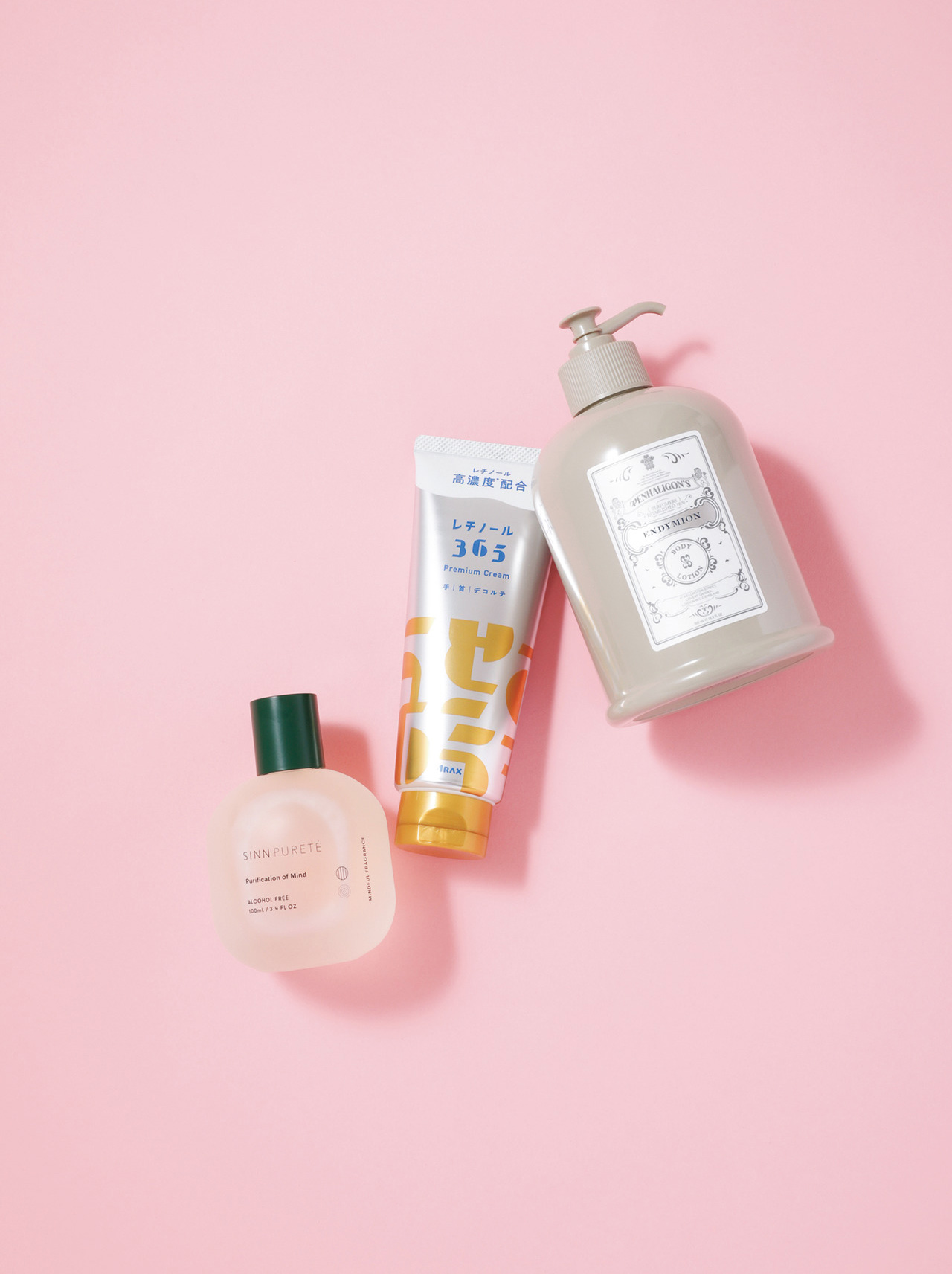 中・「お肌をツルツル美白にしたくてボディにもレチノールを使ってみました。保湿成分もしっかり入っていてお気に入りです」レチノール365 プレミアムクリーム 100g オープン価格╱アラクス