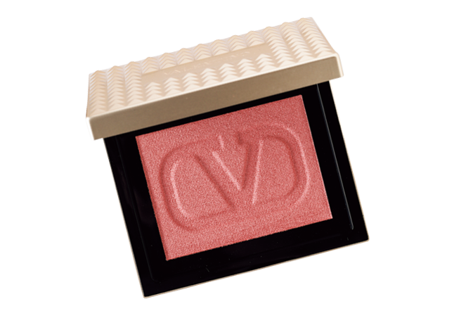 2.頬の中央にbをふんわり広げる。素肌にスッと溶け込む赤みコーラルが、内側からにじむような高揚感をプラスする。自然な温度感を漂わせて。