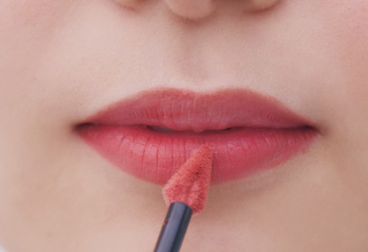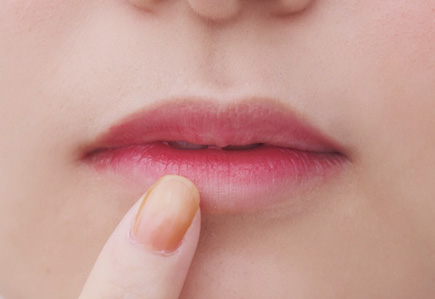4.dを唇の中央にだけのせ、指でミニマムにぼかす。赤がゆっくりと広がるような柔らかなグラデーションに仕上げ、〝余韻として残る赤〟を演出。