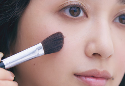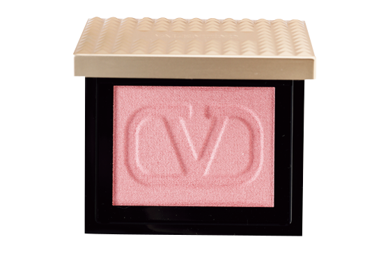4.頰の中央にdをふんわりと塗布する。淡い青みピンクの血色が、アイシーな質感の中に柔らかな生命感を添える。全体のバランスを優しく中和して。