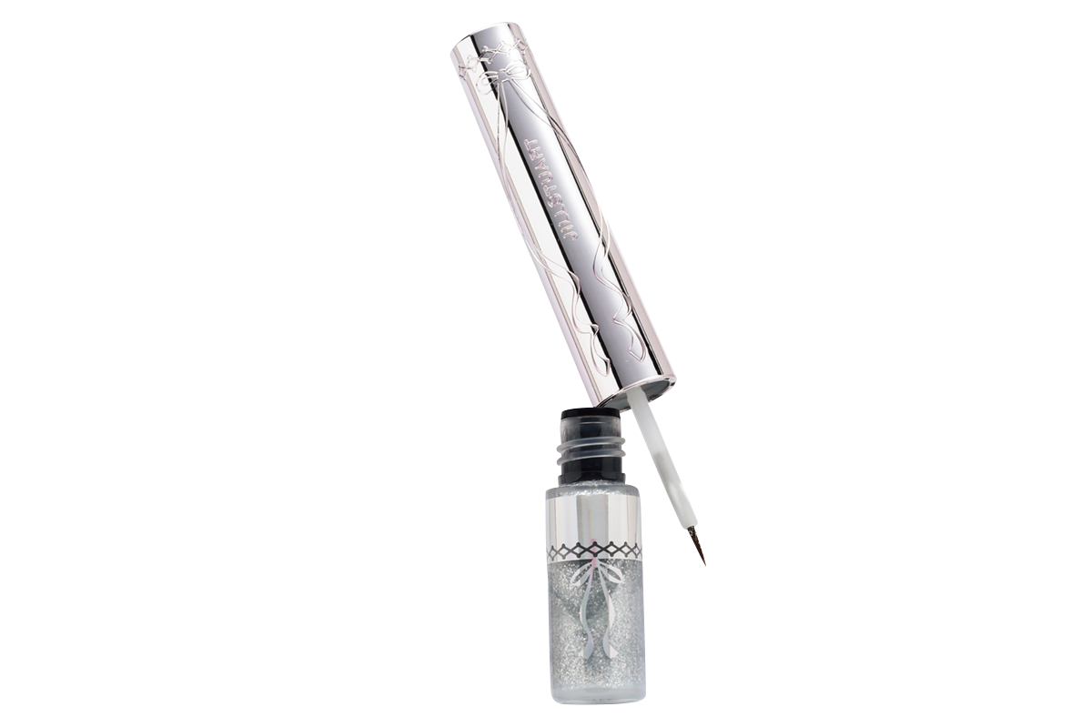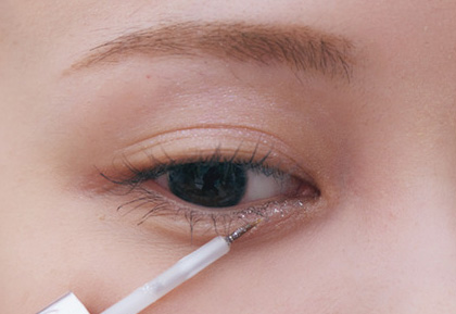 3.2のハイライトをなぞるように、cのラメライナーを重ねる。宝石のように輝く大粒のシルバーパールで、目元にインパクトのある煌めきを宿して。