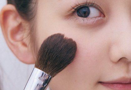 4.頬の中央にdを大きくふんわり広げる。温かみのあるレッドが目元のスパークルと調和し、表情に生き生きとした血色と柔らかな立体感を添える。