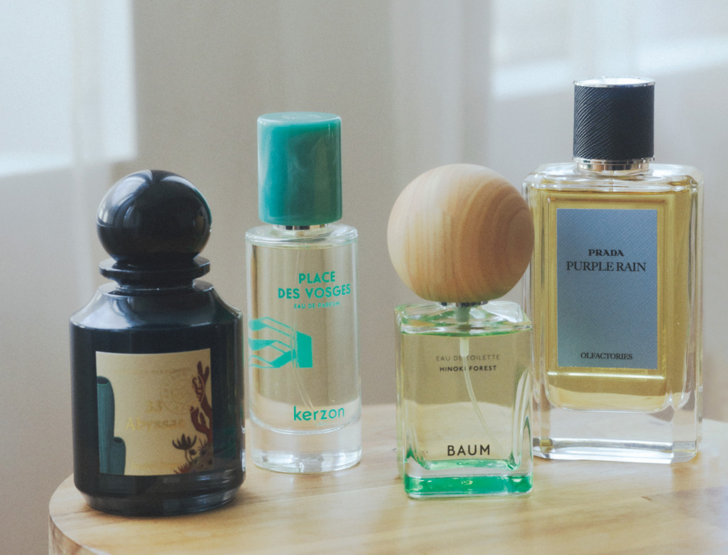 中左・繊細な花びらや木のぬくもりなど、パリの広場からインスパイアされた香り。ヴォージュ広場50㎖ ¥13,200/ケルゾン(ノーズショップ)