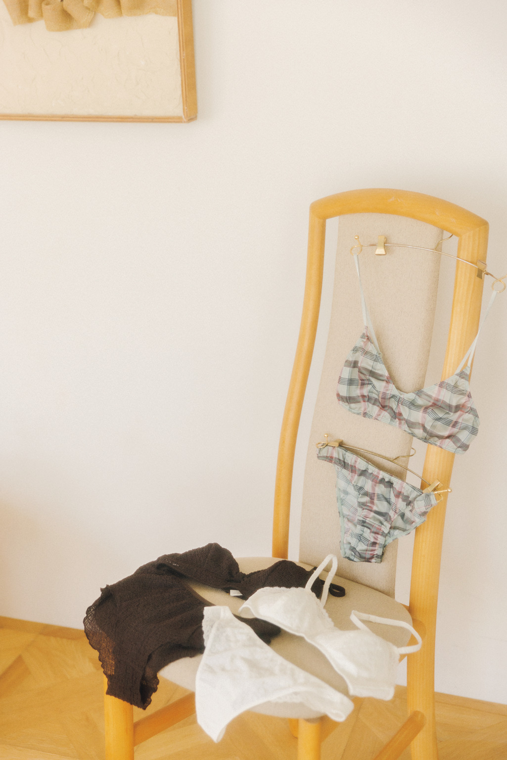 上・ヘルシーに可愛く着こなせるチェックはいつだって絵になる。ブラジャー¥11,000、ショーツ¥7,700/ともにドロウ