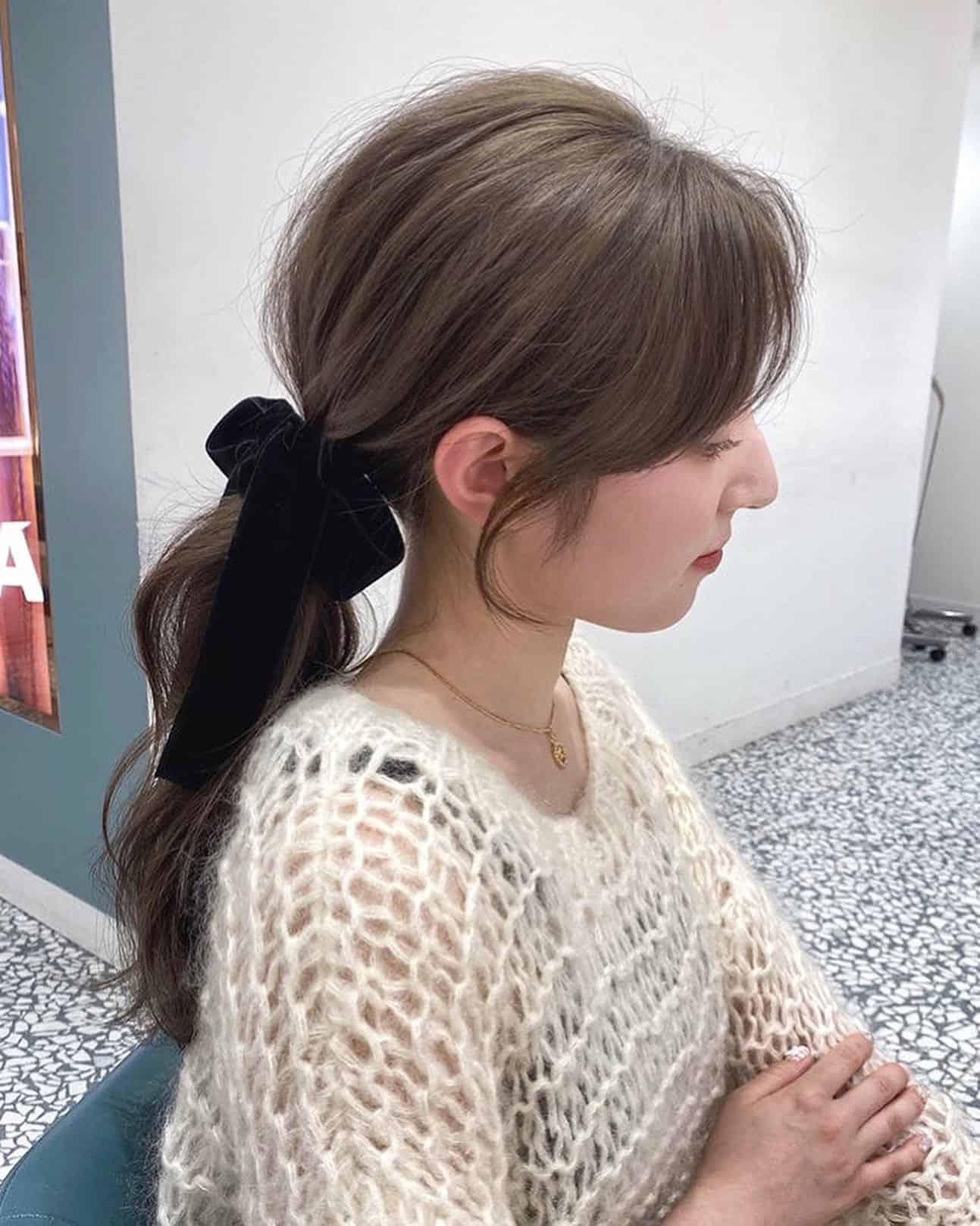 髪色を変えられない場合は、ヘアアクセサリーなどを使ってアレンジすると華やかな印象になります。