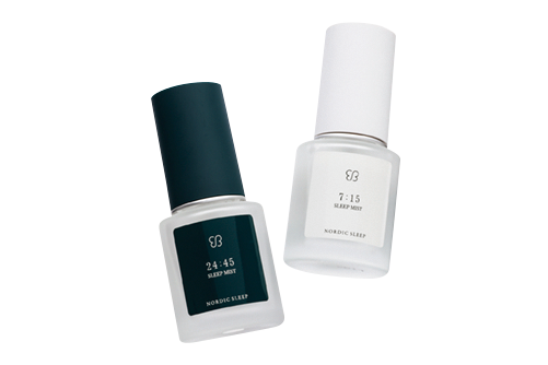 心地よい眠りを誘うには香りも大切。寝具ブランドとのコラボで開発された朝と夜のピローミストで睡眠環境を整えて。左から・uka sleep mist 24:45 for NORDIC SLEEPともに各30㎖ ¥3,960、uka sleep mist 7:15 for NORDIC SLEEP/ウカ(ウカ トーキョーヘッドオフィス)