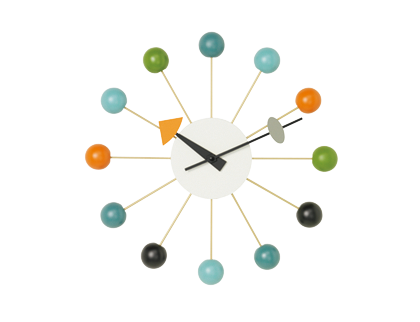 丸いフォルムとポップな色合いが印象的なウォールクロック。ボール クロック¥53,900/ヴィトラ(ともにMAARKET)
