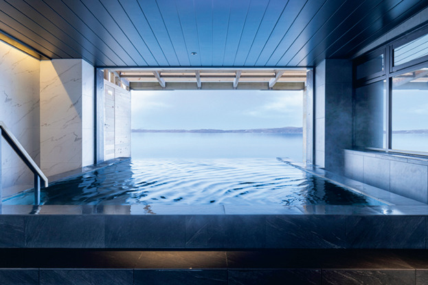 オホーツクの景色が広がる温泉やサウナが魅力の大型リゾートホテル。冬には知床の風物詩でもある流氷とともにサウナを堪能できると世界中から観光客が訪れるのも納得!