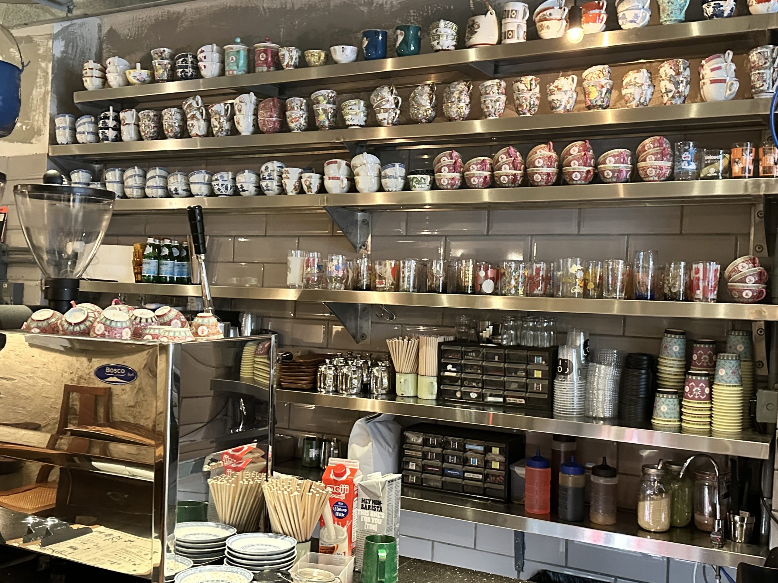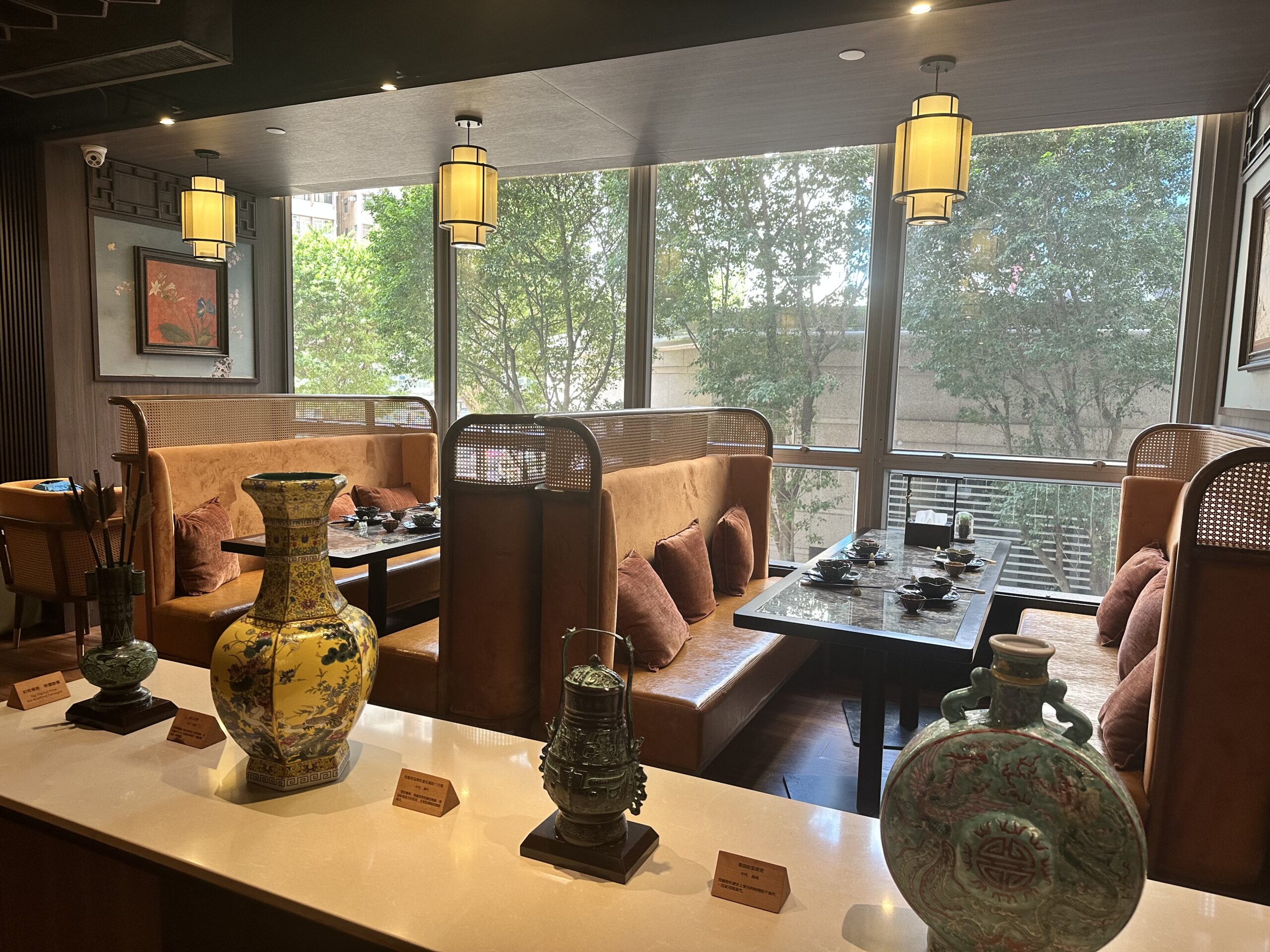 オーナーが集めたというヴィンテージの香港茶器が並ぶ店内は、さりげなくおしゃれで居心地も◎。