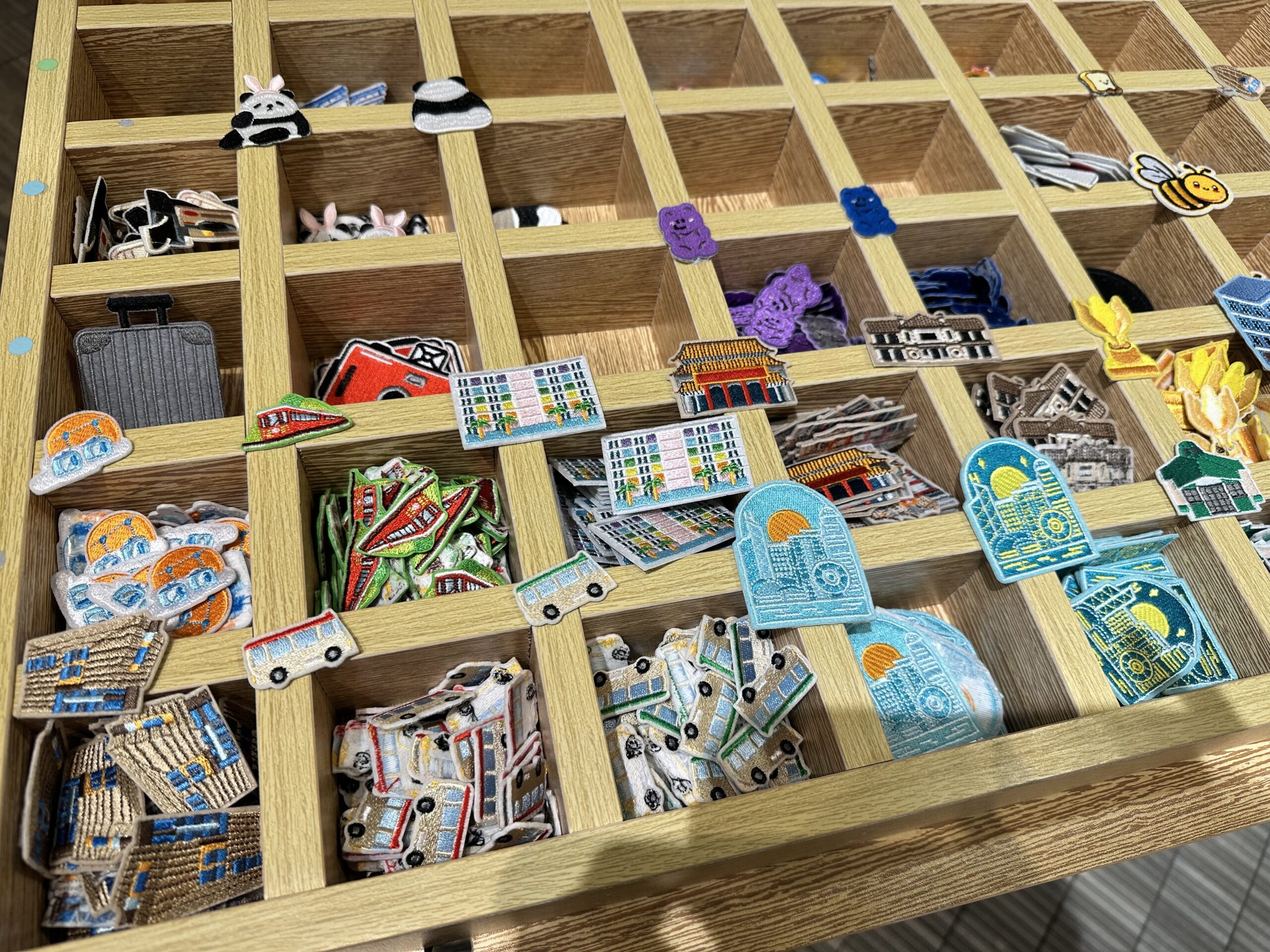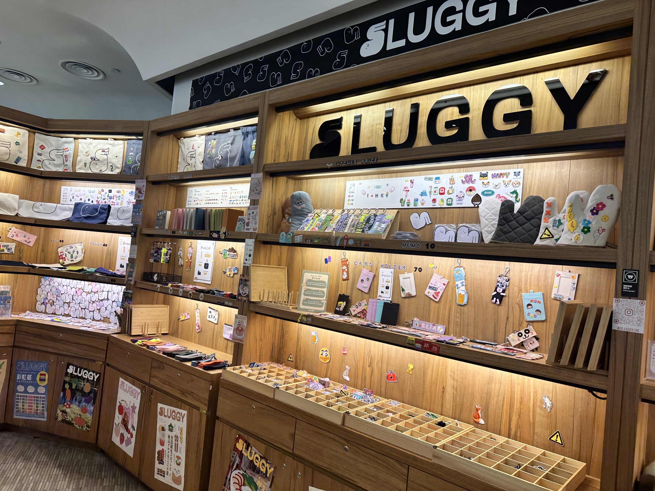まず立ち寄りたいのが、Hysan Place(ハイサンプレイス)の10階にある「Sluggy(スラギー)」。香港モチーフのワッペンを自由に組み合わせて、自分だけのオリジナルグッズが作れる、感度高めなワークショップ。