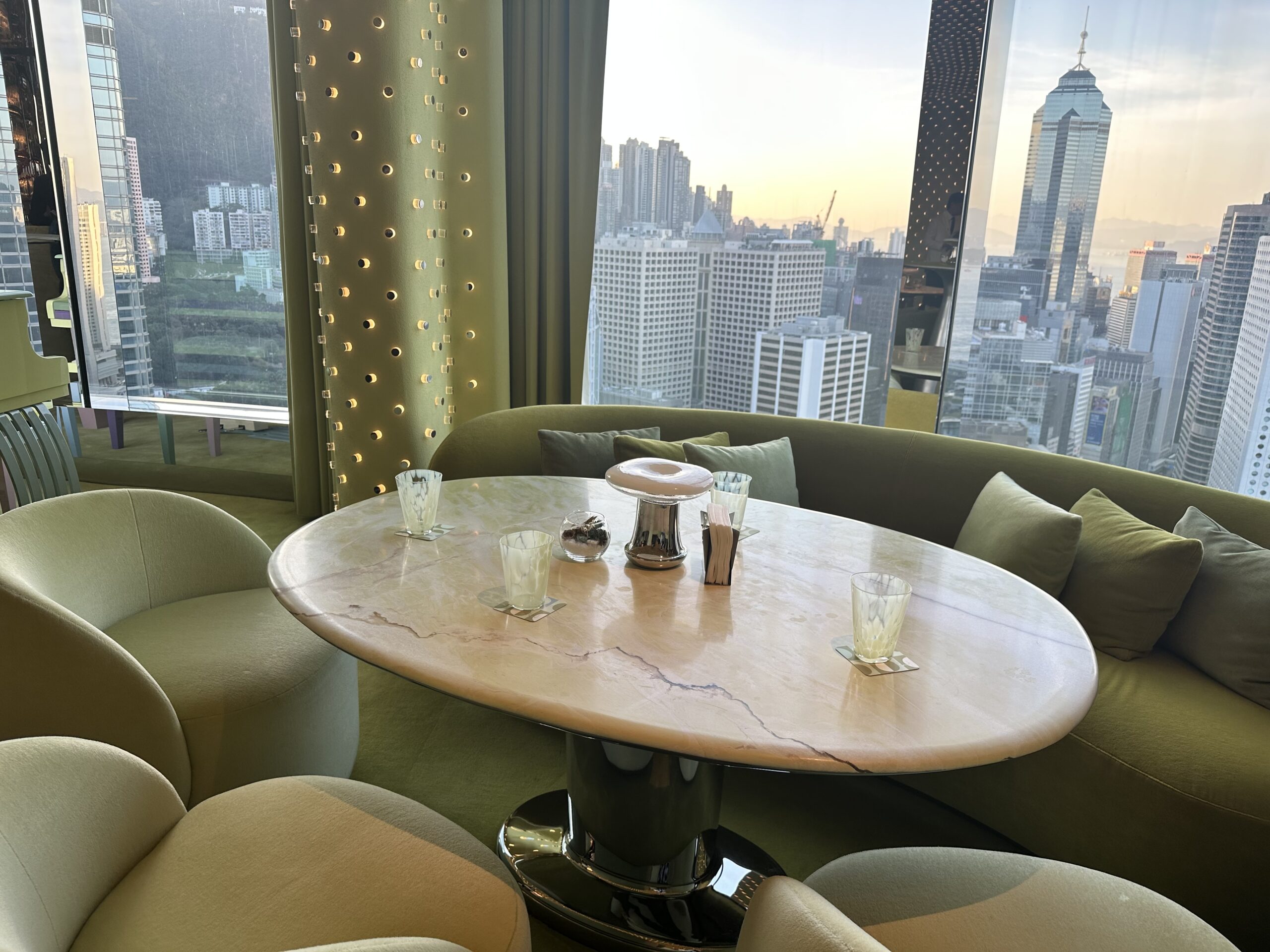夕焼けから夜景へと変わっていく景色を眺めながら、ゆっくりグラスを傾ける時間は、昼とはまったく違う香港の表情を見せてくれる。