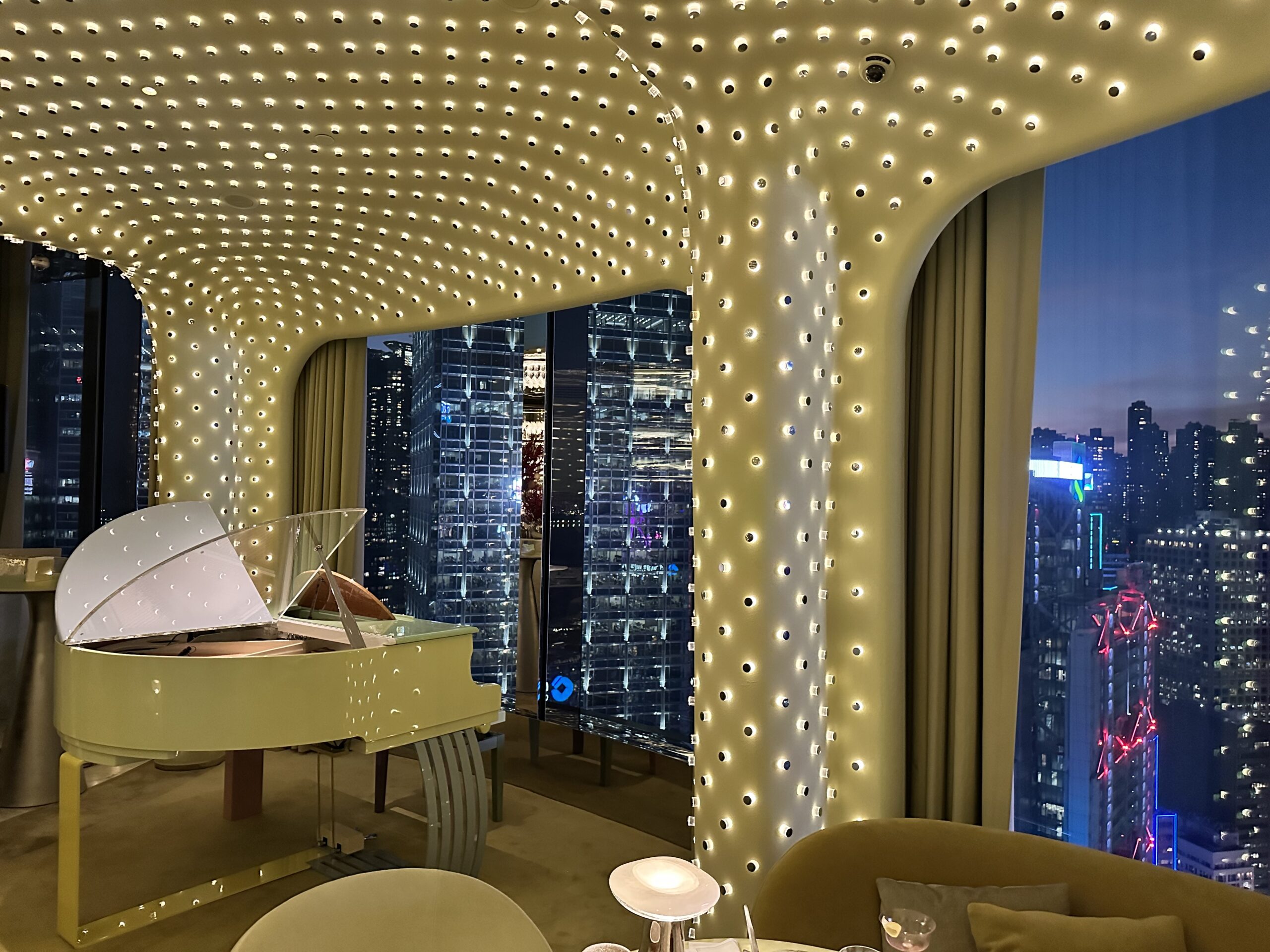ザハ・ハディド・アーキテクツが手がけたモダンな高層ビルの38階にあるのが、話題のバー「Peridot(ペリドット)」。