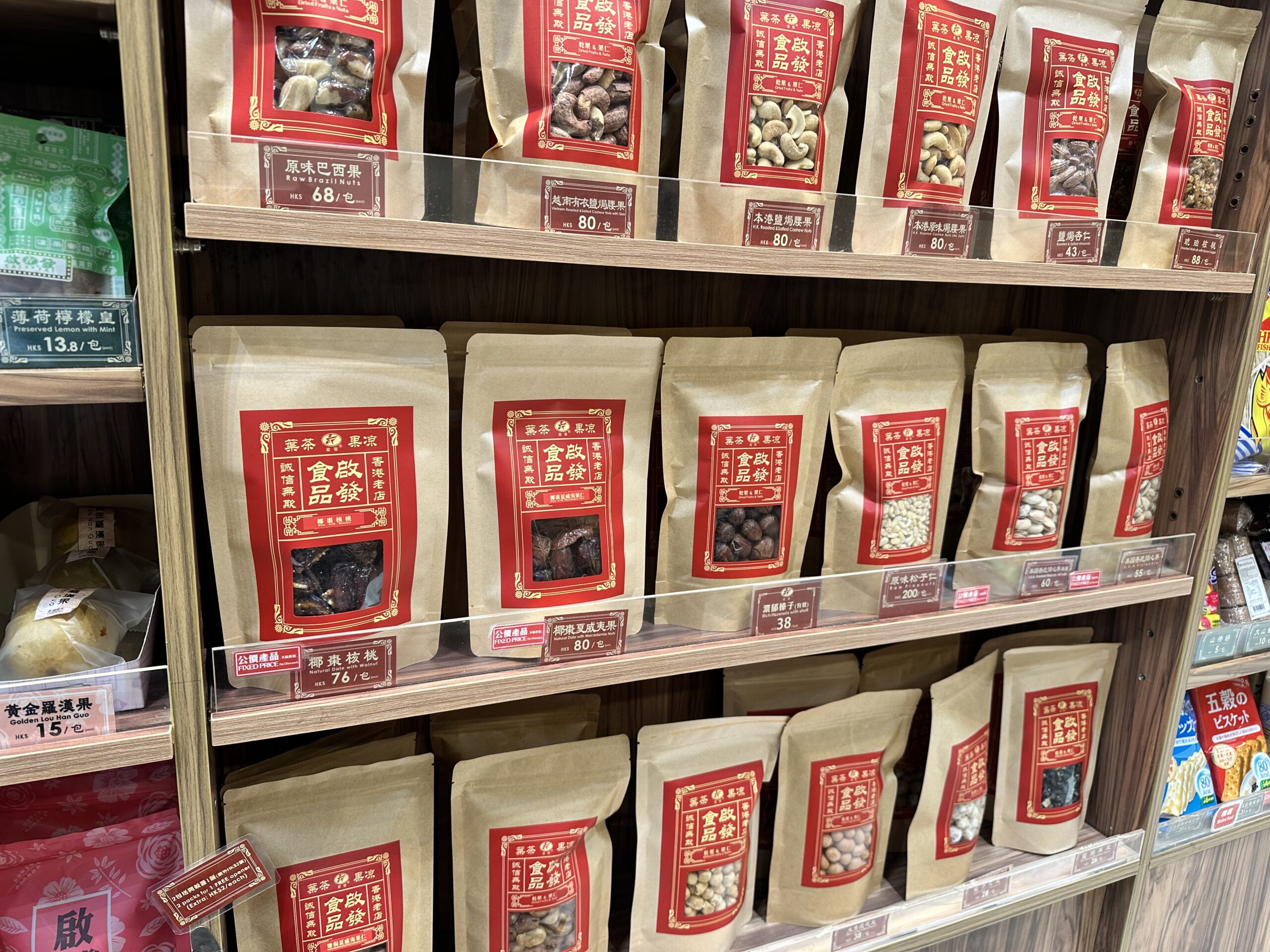 お茶やドライフルーツ、ナッツがずらりと並び、香港在住の日本人にもファンが多いお店。
