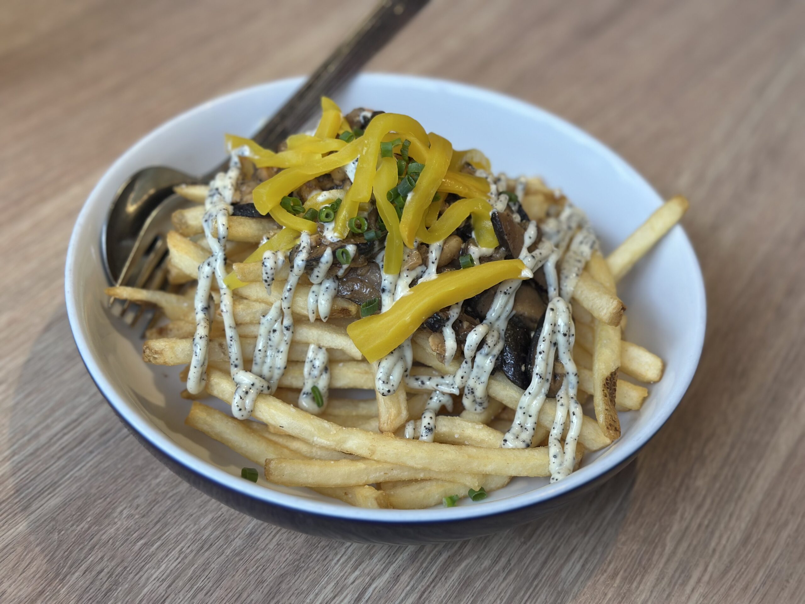 黒トリュフマヨに椎茸と沢庵を合わせたフライドポテトは、一見意外なのに驚くほど相性抜群。